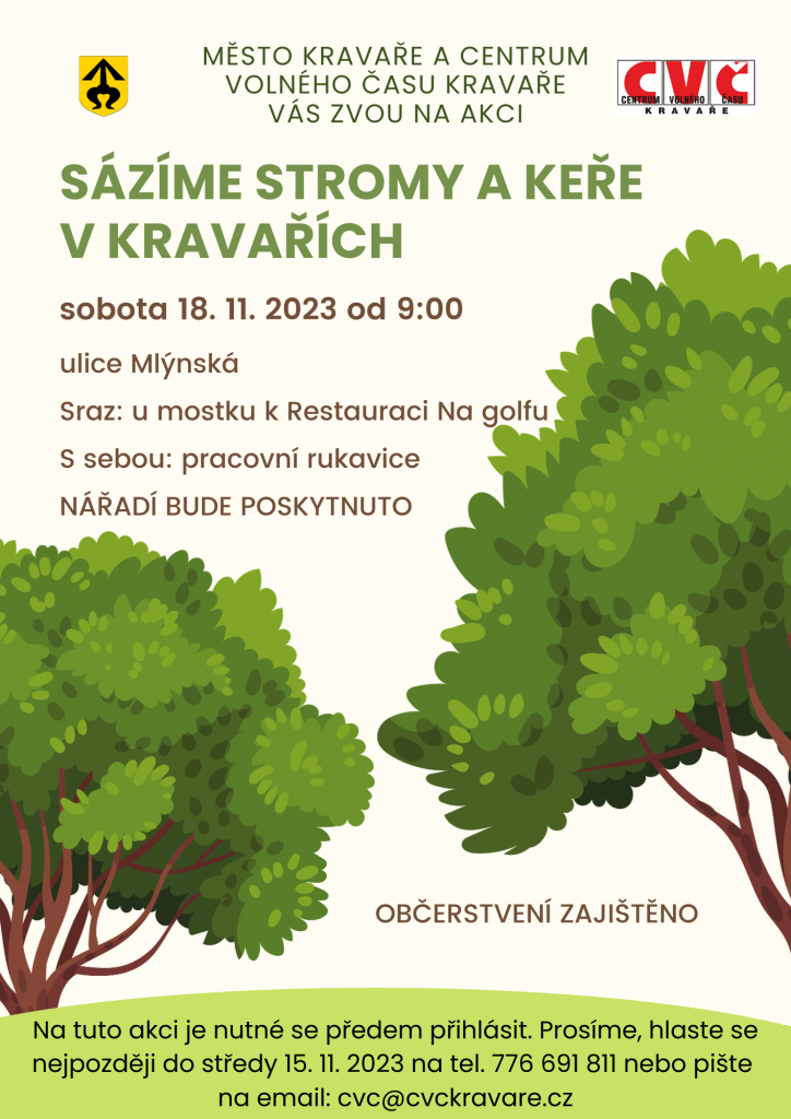 Pojďte do toho s námi! Ve spolupráci s CVČ Kravaře sázíme v sobotu 18.11. stromy a keře. Nutná registrace do středy 15.11.!