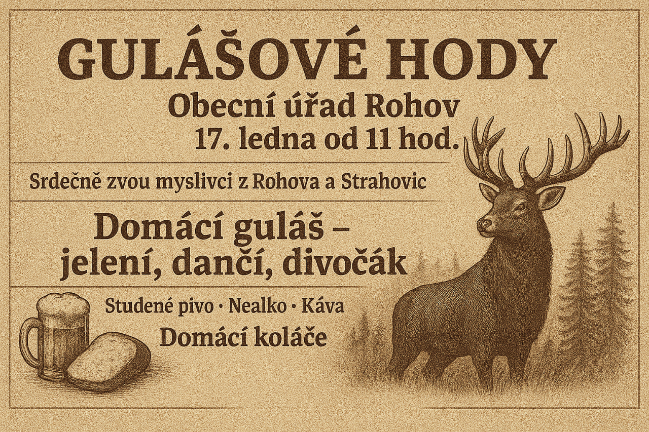 Myslivci z Rohova a Strahovic Vás zvou na Gulášové hody