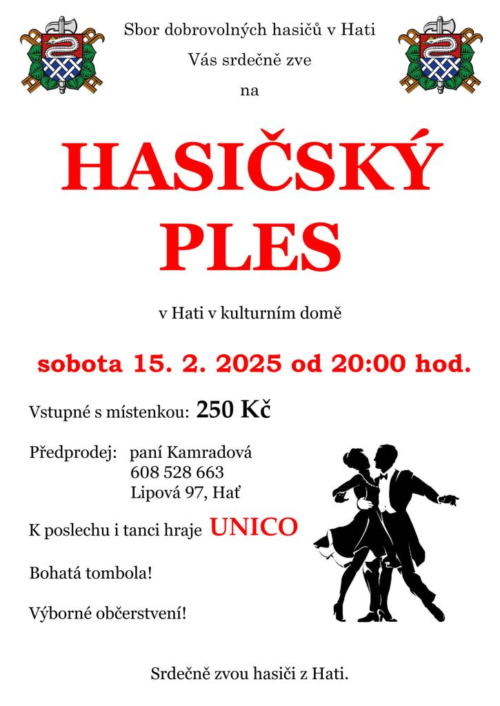 SDH Hať Vás zve na Hasičský ples