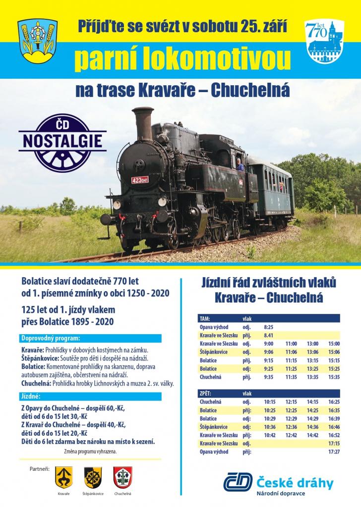 Jízda parní lokomotivou na trase Kravaře - Chuchelna