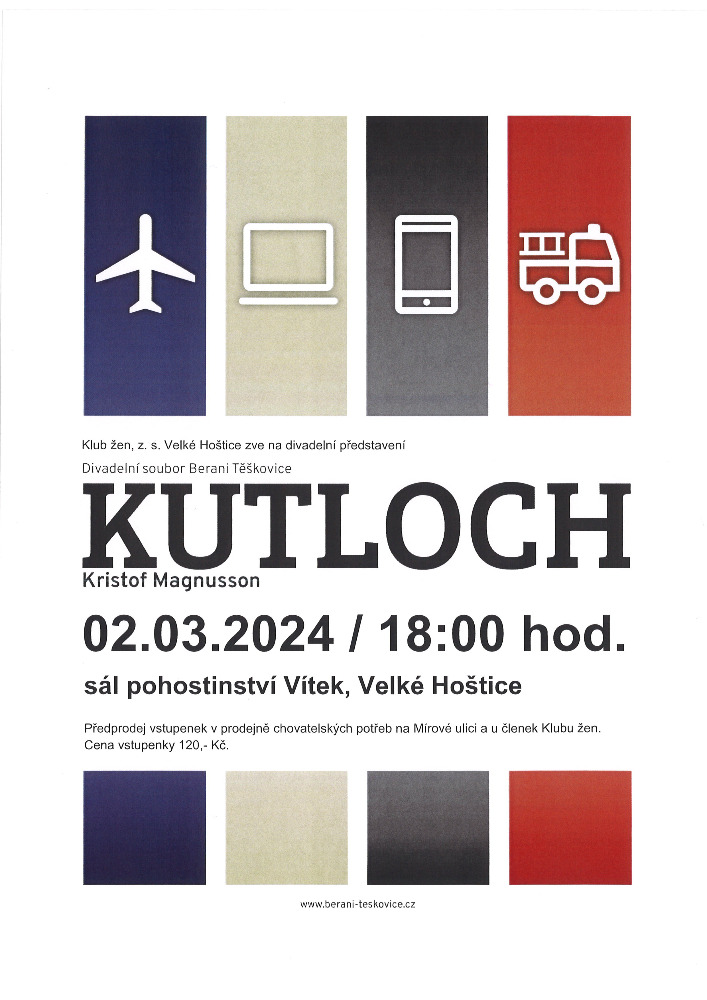 Klub žen, z.s Velké Hoštice zve na divadelní představení souboru Berani Těškovice KUTLOCH