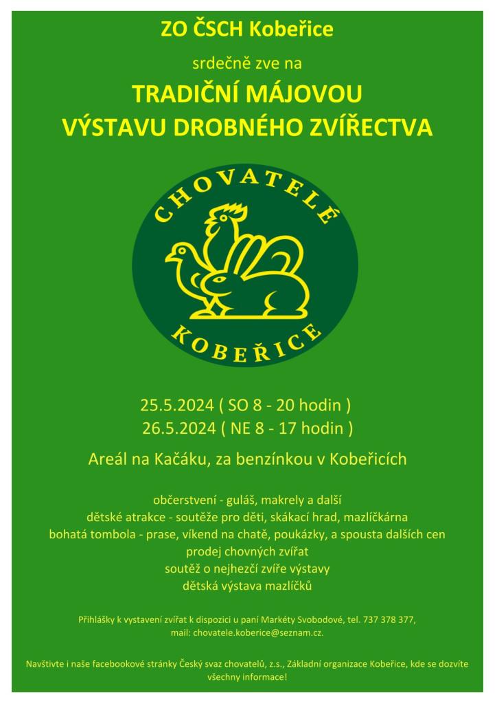 ZO ČSCH Kobeřice Vás srdečně zve na Tradiční májovou výstavu drobného zvířectva