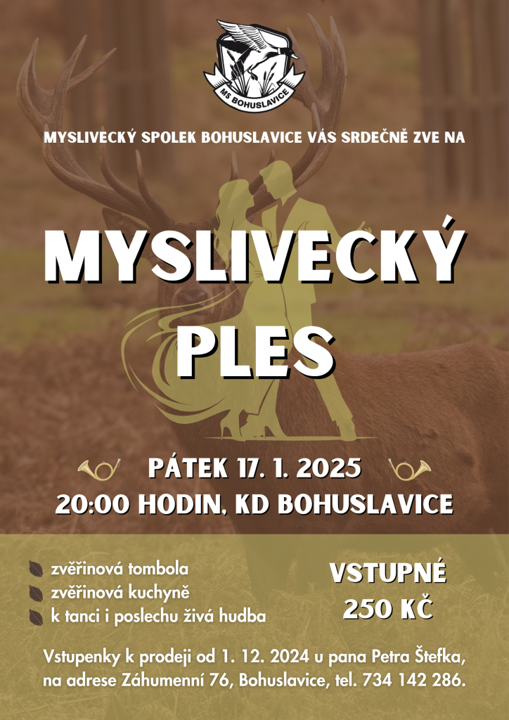 Myslivecký spolek Bohuslavice Vás srdečně zve na Myslivecký ples