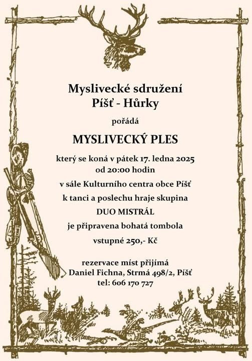 Myslivecké sdružení Píšť - hůrky Vás zve na Myslivecký ples