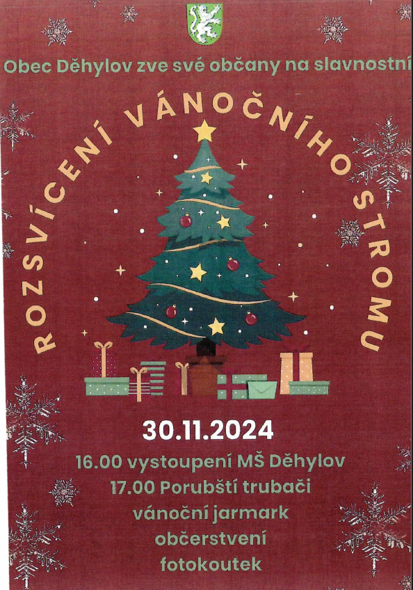 Obec Děhylov zve občany na Rozsvícení vánočního stromu