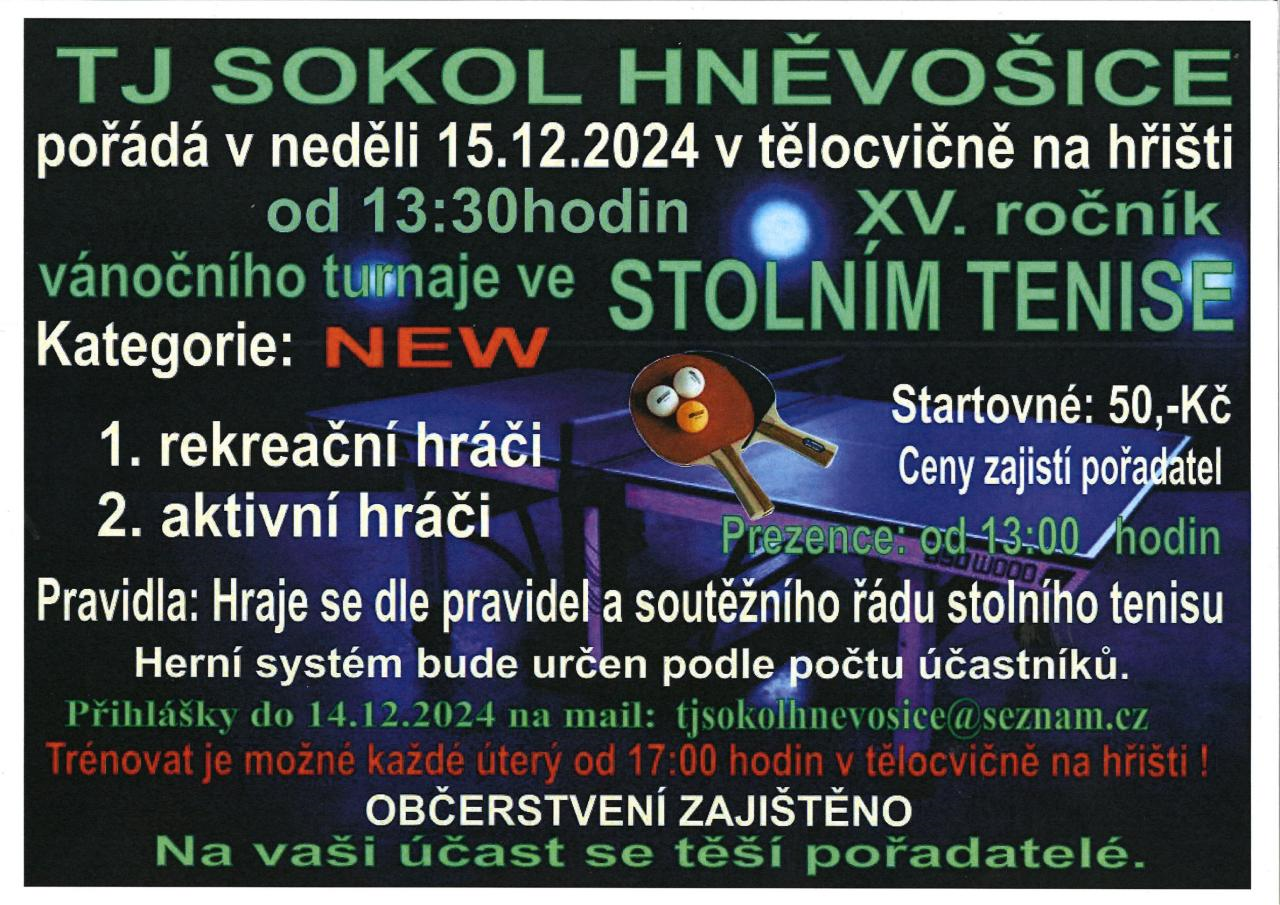 TJ Sokol Hněvošice Vás zve na turnaj ve stolním tenise