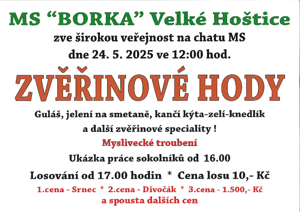 MS Borka Velké Hoštice Vás zve na Zvěřinové hody